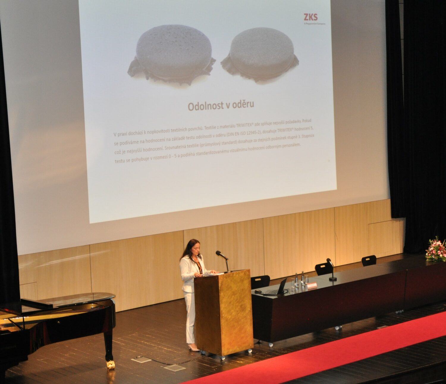 Na sympoziu vystoupili akademici, čelní představitelé univerzity, a rovněž zástupci firemních partnerů katedry. Protože jsme jedním z nich, představili jsme krátce naši pletařskou technologii Shima Seiki, kterou má katedra k dispozici pro výuku a výzkum.