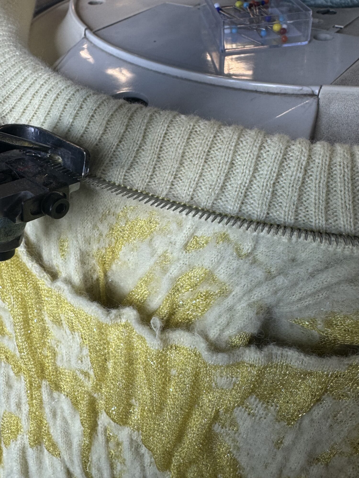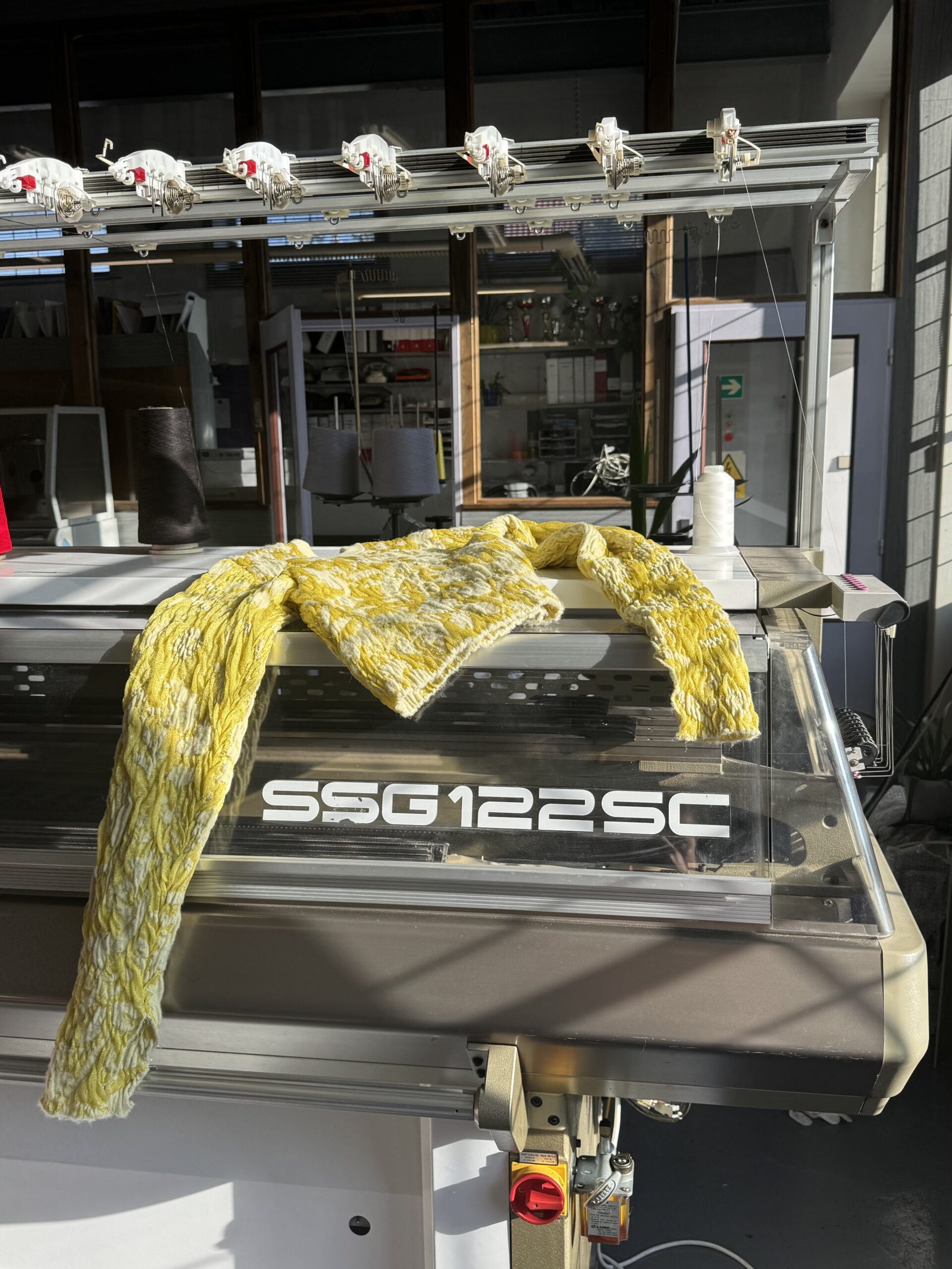 Vďaka stáži vo firme Knit-tex som získala možnosť experimentovať so širokou škálou strojov